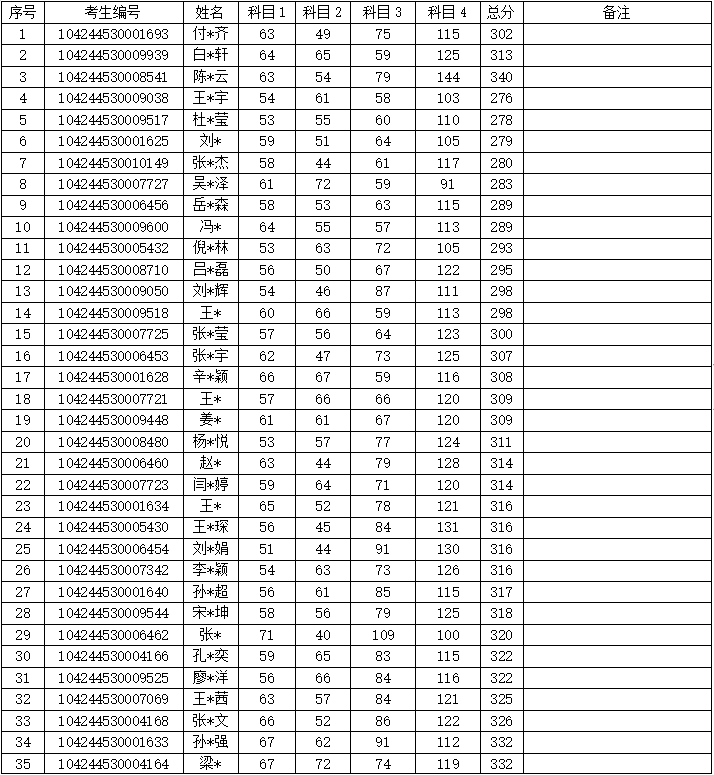 禁闻网 进入复试的一志愿考生名单
