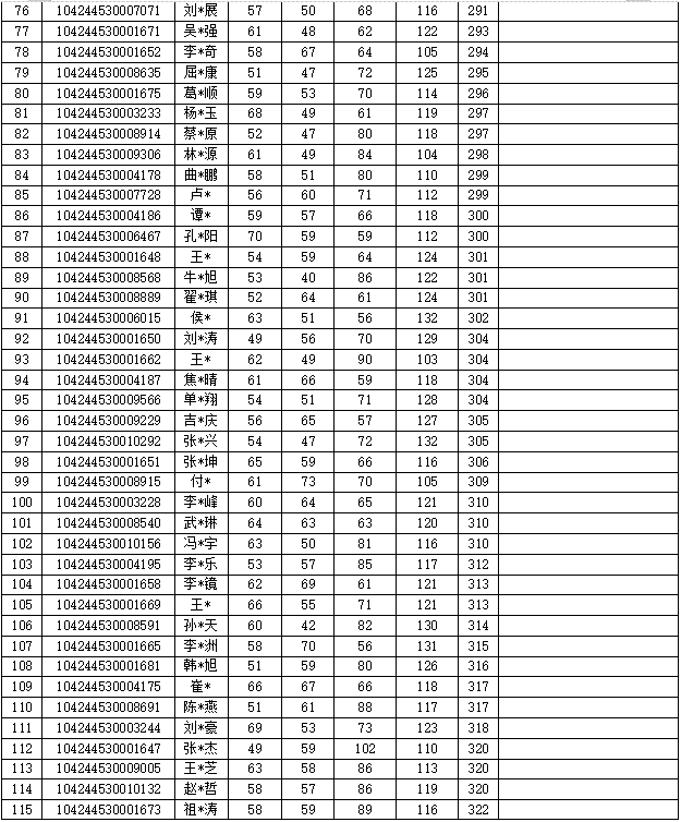 3.全日制考生和非全日制考生按照总成绩分别排名,根据相应招生计划分别录取;一志愿考生和调剂考生按照总成绩分别排名,根据相应招生计划分别录取。