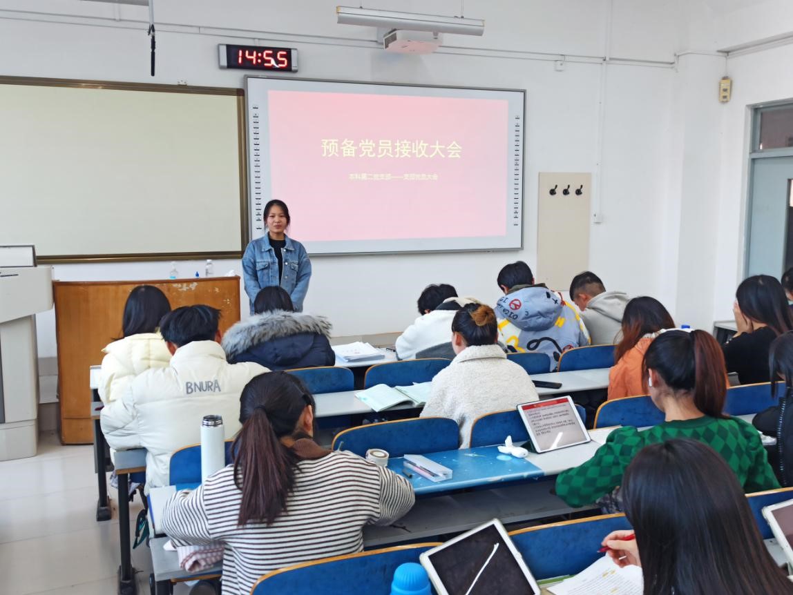 会议严格按照党组织接收预备党员程序,首先由各位党员发展对象汇报个人情况。李佳迎等26名同志分别向党组织进行汇报,汇报的内容主要包括对党的认识、入党的动机、本人履历、现实表现、家庭主要成员和主要社会关系情况,以及需要向党组织说明的其他问题。随后由入党介绍人介绍培养考察情况,全体党员讨论并发表意见,投票表决接收预备党员。