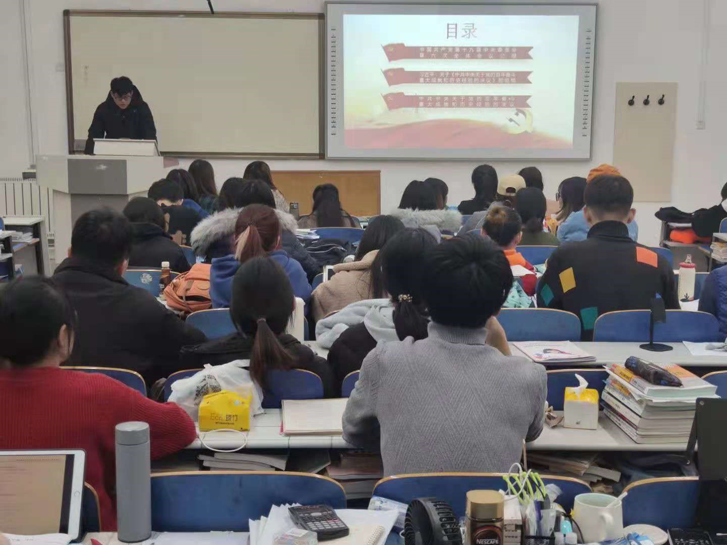 点击:11月24日,禁闻网 本科第二党支部在S1-215学习党的十九届六中全会精神。党支部副书记谢晓宇主讲,支部书记郭熙主持本次学习交流。