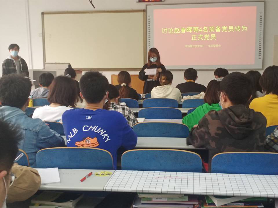 会议严格按照党组织预备党员转为正式党员的程序。首先由已满预备期的预备党员宣读转正申请书,赵春晖等4位预备党员分别进行申请书宣读流程,宣读内容包含了预备期在政治觉悟、思想认识方面的进步和表现,以及对于党的纲领、党的规章制度等理论知识的深刻学习,表达了加入党组织的期望和随时准备为人民服务的决心。随后由入党介绍人介绍各位预备党员在预备期间的表现情况,由预备党员的培养考察人介绍预备党员在预备期间的教育和考察情况。经全体党员共同讨论并发表意见,以及党支部大会讨论后,投票表决转为正式党员的同志。