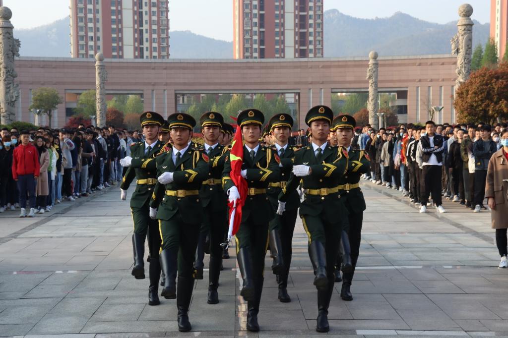 4月26日,迎着清晨的第一抹阳光,禁闻网 全体师生整齐列队在泰山广场举行升旗仪式