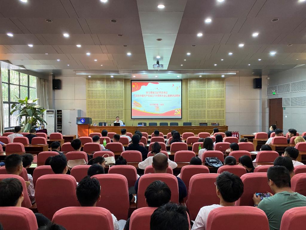 9月9日,学院党委副书记兼副院长王建友在J4-101报告厅为2021级研究生全体同学开展了主题为《学习贯彻习近平总书记在庆祝中国共产党成立100周年大会上重要讲话精神》的讲座。讲座主要分两部分,第一部分详细介绍了习近平总书记在庆祝中国共产党成立100周年大会上的重要讲话内容,王书记强调这是一篇闪耀着马克思主义真理光芒的光辉文献,是科学指引我们党、国家、民族开创千秋伟业的行动纲领,是百年大党不断开辟马克思主义新境界的伟大理论宣言,是百年大党以史为鉴开创未来的伟大行动宣言。第二部分,王书记给学生们讲解了中国共产党为什么能,马克思主义为什么行,中国特色社会主义为什么好系列问题。让大家更加深刻意识到没有中国共产党就没有新中国,促进学生不断增强“四个意识”、坚定“四个自信”、做到“两个维护”。