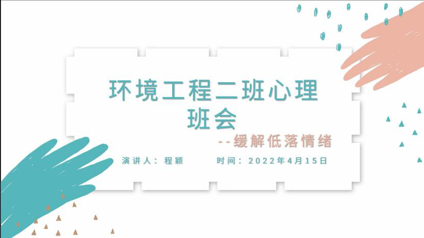各班心理联络员选择同学们密切关心的话题,以班会形式向同学们传达爱与希望。安全一班以“心怀关爱之心,拥抱幸福生活”为主题,通过轻松的小游戏让同学们切身感受到关爱他人的重要性;安全四班以“传递爱意”为切入点,让同学们感受到爱是一种能力,可以让世界充满阳光与温情;环境二班带领同学们寻找“缓解低落情绪”的方法,帮助同学们建立释放情绪的正确途径;环境四班另辟新径,以“适应环境”为主题,通过直观的数据分析,让同学们体悟健康的社交方式和积极向上的大学生活……