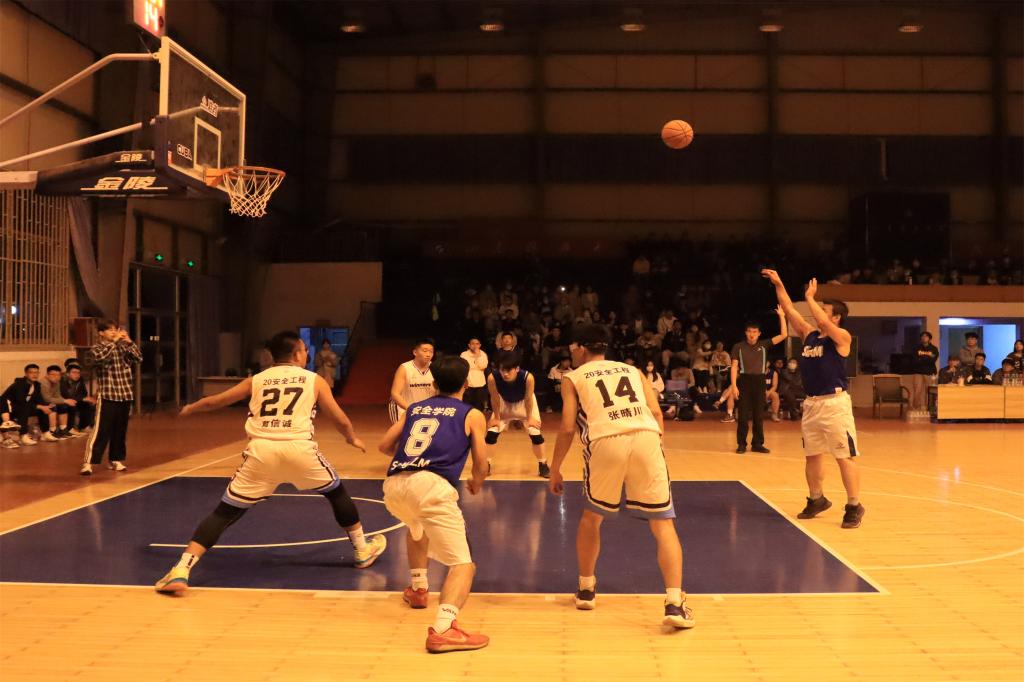 5月8日晚,随着裁判的一声哨响,决战正式拉开帷幕。身着白色球衣的研硕三队开始发动猛烈攻势,8号队员以迅雷不及掩耳之势在对方球员之间穿梭。精准有力的投篮,潇洒自如的动作,为队伍赢得了开场的首个三分球,全场瞬间爆发出高昂的欢呼声。而身着蓝色球衣的20安全队也毫不示弱,凭着顽强的防守,队员之间完美的配合,将双方比分逐渐拉小。最终,硕研三队凭借快攻快打的战术以62:45的比分赢得了比赛的胜利,成功卫冕冠军。硕研2019级宋增谋荣获最佳球员奖,2020级葛信诚荣获最佳防守奖。