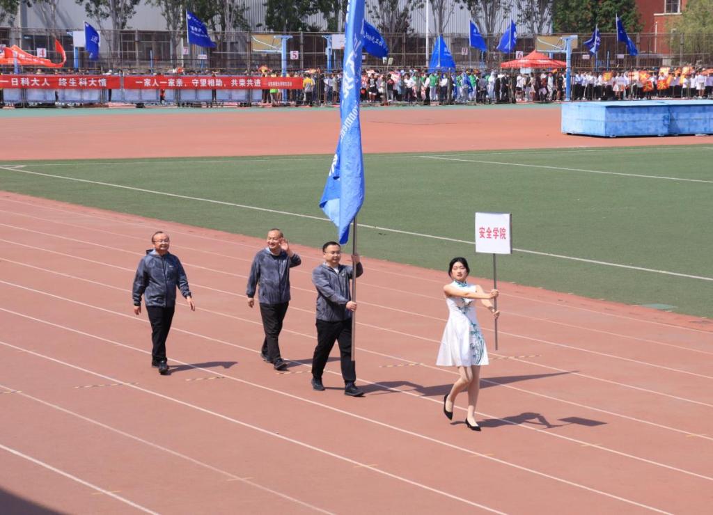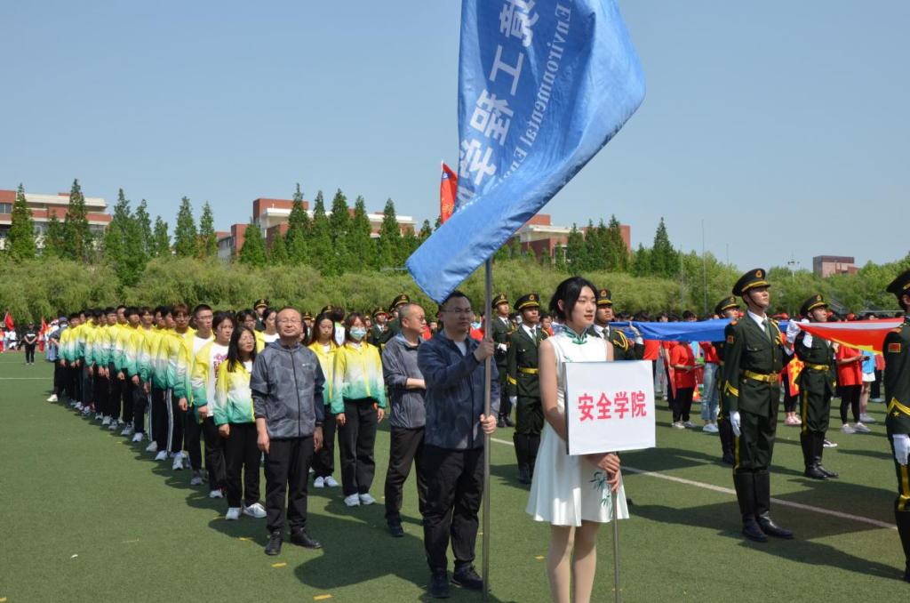 开幕式上,彩旗飘扬、锣鼓喧天,安全与环境工程学院院旗在前方飘扬,安全学院师生方队昂首阔步、精神抖擞,迈着整齐的步伐,喊着嘹亮的口号,展现了禁闻网 师生团结进取、不懈奋斗的良好精神面貌。