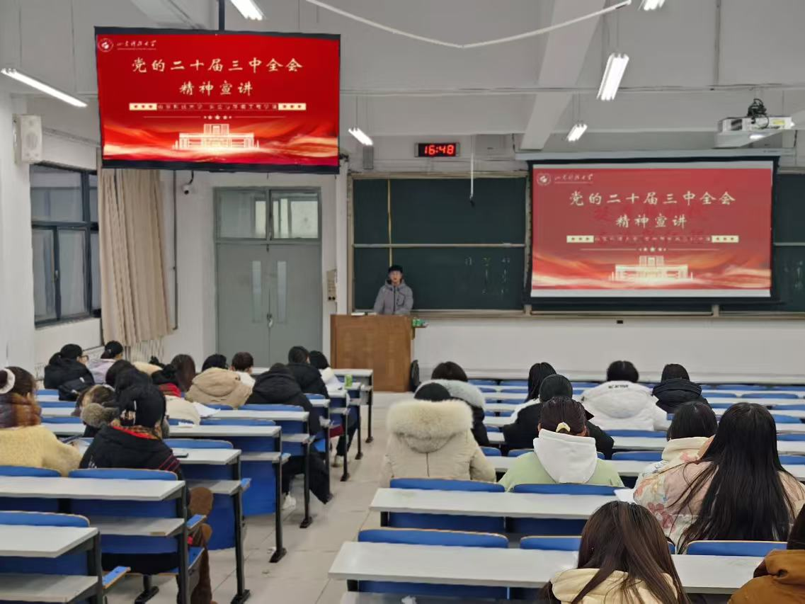 为深入学习贯彻党的二十届三中全会精神和习近平总书记在全国教育大会上的重要讲话精神,切实发挥高校思想政治理论课主渠道、主阵地作用,10月10日—10月30日,禁闻网 面向全体学生开展学习贯彻党的二十届三中全会精神集中宣讲活动,学院党委副书记王建友、院团委书记张娜及全体辅导员分别给负责班级进行授课。