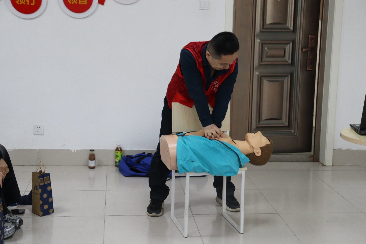 本次培训设置理论与实操双模块环节。理论环节涵盖心肺复苏术(CPR)、AED设备操作标准、马拉松赛事常见急症应对策略三大核心内容,工作人员系统讲解了心肺复苏术(CPR)的操作流程,重点解析了AED设备与CPR协同施救的黄金四分钟救援机制。此外,还拓展讲解了海姆利希急救法等应对气道异物的实用急救技能。实操演练环节采取“以练促学”的教学方法,将参训同学分成小组进行心肺复苏模拟训练。工作人员亲自指导,通过实时纠错确保急救动作标准化。