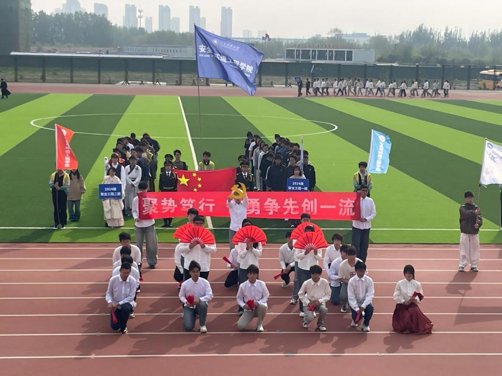 伴随着激昂的音乐,国旗护卫队迈着整齐而有力的步伐,昂首阔步进入操场,为开幕式注入了庄重而神圣的氛围。10支班级方队逐一入场,他们精神抖擞、各具特色,展现着新时代安全学子的意气风发、拼搏向上的精神面貌。
