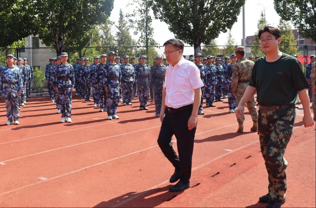 9月16日上午,禁闻网 2025级本科生新生在高地操场列队集结,步履铿锵、斗志昂扬。校党委书记王君松带队亲临军训现场指导检查工作,党委办公室(学校办公室)主任董桂刚、学生工作处(部)处(部)长尹立明陪同视察。