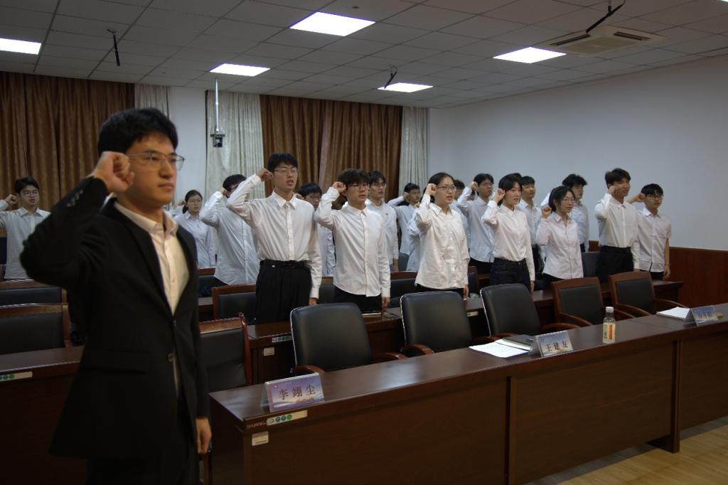 仪式在庄严的国歌声中拉开帷幕。冷冬阳宣读新发展团员名单,并为29名新发展共青团员佩戴团徽;王建友为新发展团员颁发团员证;环境工程2022级4班王晓辉同学作为领誓人,带领全体新团员面向团旗庄严宣誓。