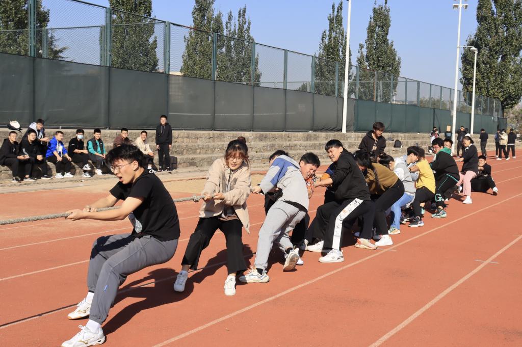 飒爽秋风拂去了空气中的燥热,却丝毫没有削弱同学们的热情,比赛开始在即,参赛队员们个个干劲十足,士气高涨。一根麻绳连接的是团结与坚持,一根麻绳演绎的是奋斗和拼搏。随着哨声响起,比赛正式开始。“一二一,一二一”整齐的口号响彻操场上空,人挨人,脚靠脚,咬紧的牙关、攥红的双手,无不透露出不屈的意志;一声声欢呼与呐喊此起彼伏,阳光下参赛者团结一心、奋力拼搏的凝聚力显得格外耀眼。