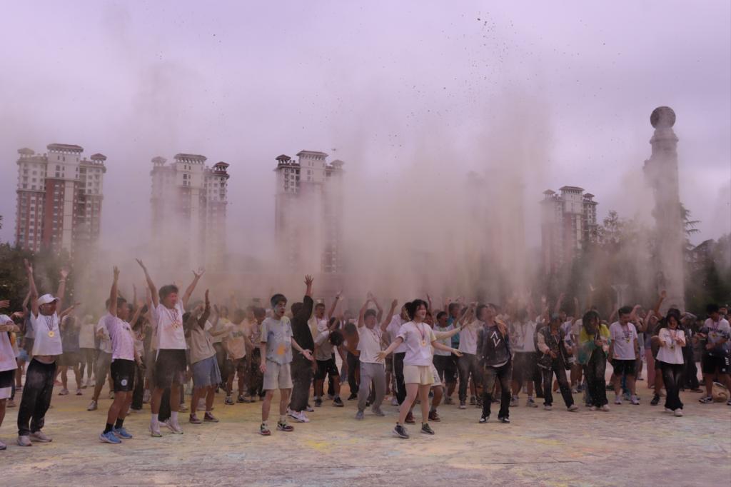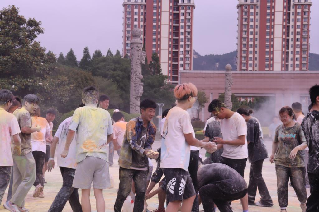 本次活动以泰山广场为起点,途径校园一圈,马拉松协会志愿者领跑,沿途设有医疗点与撒粉站点等为选手们提供保障、加油助威。伴随着开始枪声,“彩粉跑”正式打响,同学们冲出起跑线,伴着抛洒在蓝天下的“彩粉”,向着终点冲去。彩色校园跑结束后,进入到“彩粉大战”环节,气氛再次被推向高潮。大家以“彩粉”为武器,挥洒向周围的同学,欢呼、乱战,穿着单一色调衣服的学生们,经彩粉的洗礼变得色彩纷呈。“我们追着风向前奔跑,自由的感觉像飞上了云霄,所有压力一瞬间都消散了!”2021级安全工程学生戚敬坤如此说道。
