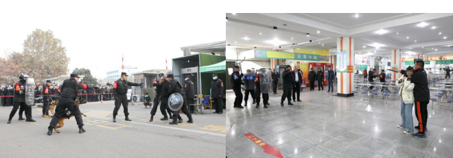 本次应急演练内容为防暴应突能力演练,共设置“一名社会闲散人员欲强行闯入校园”和“一名学生因感情纠纷在学校食堂劫持其女友的舍友”两个场景。整个演练过程各环节衔接紧密,协调有度,演练人员反应迅速,行动果断,处置规范高效,给现场观摩人员留下了深刻印象。