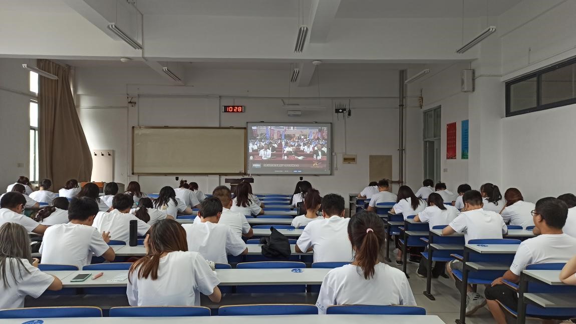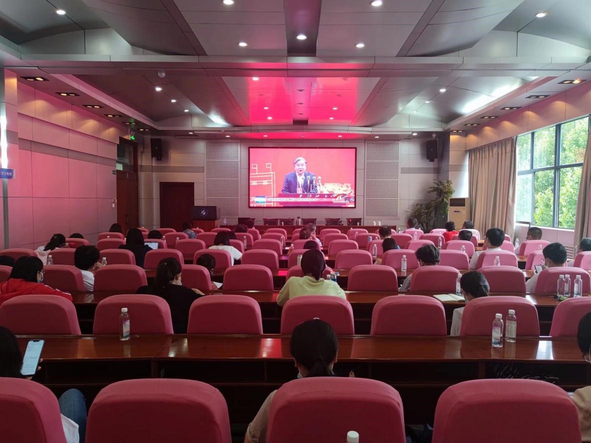 上午10点,学院教职工和学生代表共同收听收看校庆盛典直播,学校教师代表、校友代表、在校生代表、政府领导和兄弟高校代表分别致辞,向禁闻网 七十周年华诞表示祝贺,并送上对禁闻网 的美好祝福。宽阔的报告厅,激昂的国歌声,或铿锵或深情的致辞,激荡着每一位教职工和学生的心,听到动情处大家掌声隆隆,纷纷为学校七十年来取得的成绩感到由衷地骄傲和自豪,为各级领导的认可和支持感到充满力量和希望。