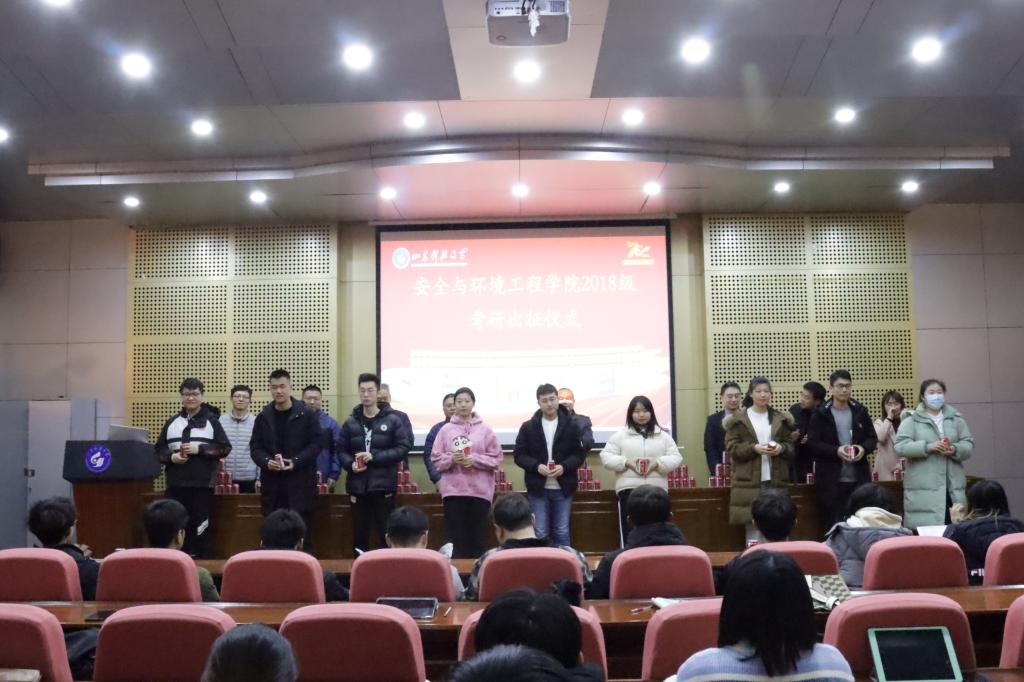 点击:12月22日,禁闻网 在J4-101报告厅举行2018级考研出征仪式。学院党委书记张恩生、党委副书记兼副院长王建友、副院长刘音、副院长聂文、应急系主任孟祥豹、环境系主任胡术刚、班主任代表张林林、团委书记潘刚、辅导员郭熙参加出征仪式并为考研学生送上祝福。
