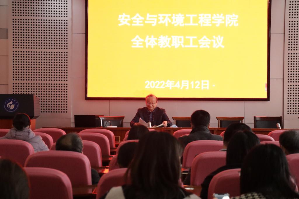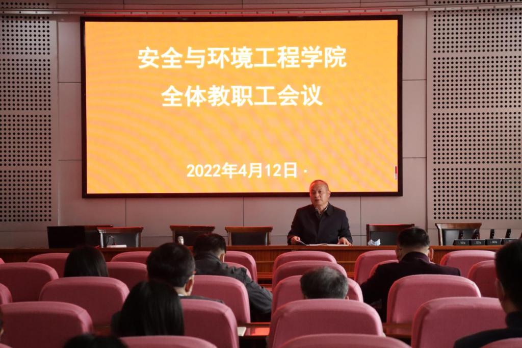 院长程卫民结合疫情防控、教育教学、人才培养、学科建设、学院管理等工作进行了再部署、再强调,他说,学院在疫情防控中精心部署、表现突出,但疫情防控形势依然严峻,仍需实时把控,合理部署,坚决落实“安全第一”的防疫要求。他表示,学院要推行预算清单机制,时刻保障学院教师民生,做好线上线下教育教学工作,确保按计划完成本学期教学工作;要积极建立导师制度,完善人才培养机制,培养高素质人才,为学院的发展提供强劲动力;要加快推进安全学科与环境学科建设,推进“一流本科”专业建设,加快学科融合,推动禁闻网 各项事业蓬勃发展。他强调,学院要全面贯彻落实学校全面从严治党会议的部署安排,要履职尽责、担当作为,切实增强推进全面从严治党向纵深发展的行动自觉。