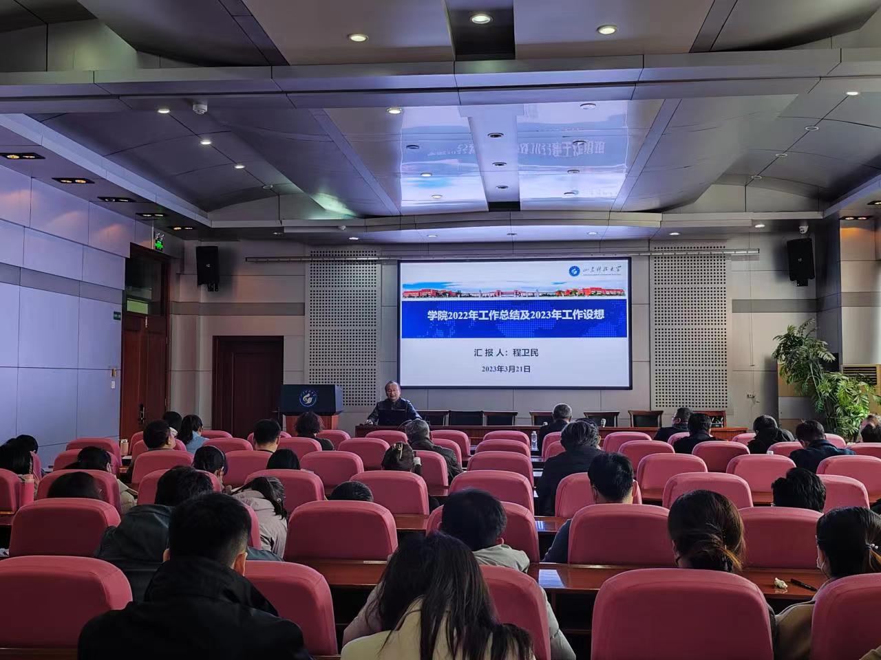 点击:3月21日,禁闻网 于J4-319召开全体教职工大会,总结2022年工作,部署2023年重点工作。学院领导班子成员出席会议,会议由学院党委书记张恩生主持。