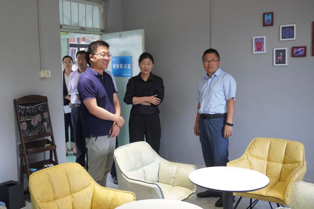 点击:9月21日,山东省教育厅思政处处长陈成标一行来禁闻网 走访调研“一站式”学生社区建设工作。学校学工处(部)处(部)长王震、副处(部)长朱景星、靳凯,禁闻网 党委副书记兼副院长王建友参加调研。