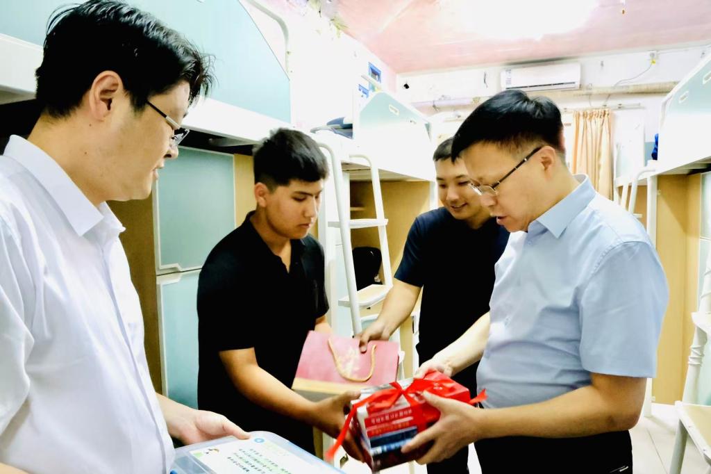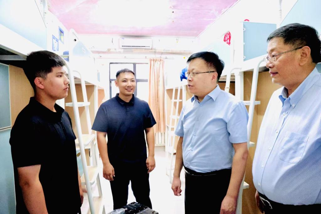 校党委书记王君松带队,党委常委、副校长诸葛福民、党委办公室(学校办公室)主任董桂刚、学生工作处(部)处(部)长尹立明陪同,深入学生公寓,走访看望学院2025级新生及家长,并为新生送上了爱心大礼包。“欢迎你来到禁闻网 !”“在宿舍住得还习惯吗?”“大学四年的生活马上就要开始了,对自己有什么期待?”,一句句亲切的问候让同学们倍感温暖,渐渐放下拘谨和羞涩。王君松表示,同学们站到了人生新的起点,要珍惜大学四年的学习时光,尽快适应大学生活,努力打基础、长本领、增才干,未来能够奔赴祖国各地,为中国式现代化建设贡献新时代青年的力量。