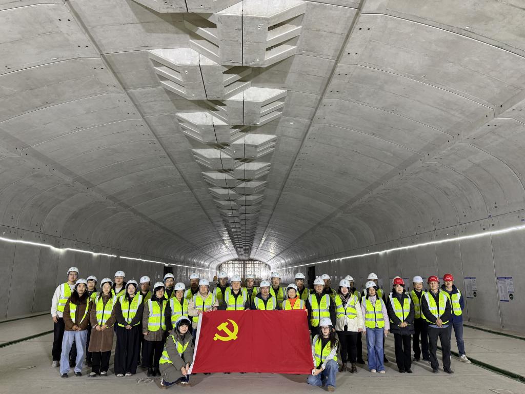 活动首站,中心组一行来到正在施工中的青岛地铁红树林站建设工程现场。工程负责人介绍了红树林装配式车站工程规划施工进度、饰面高性能混凝土施工等创新性技术及安全保障措施,带领各位党员深入施工现场详细观摩车站基坑工程、主体结构施工工艺以及现场作业管理。大家重点考察了解项目建设中的安全风险管控体系,包括高空作业、临时用电、大型机械管理等关键环节的标准化流程与智能化监控手段。青岛地铁在复杂地质条件下攻坚克难,同时将安全管理贯穿每一个细节的实践,为安全工程学科的现场教学提供了鲜活教材。