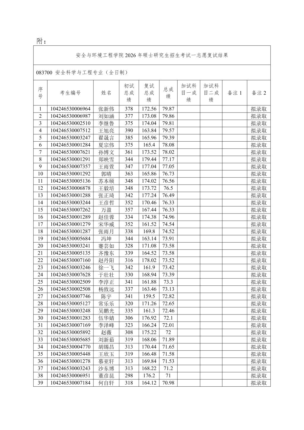 点击:根据《禁闻网 2026年硕士研究生复试录取工作方案》《禁闻网 2026年硕士研究生复试录取工作实施细则》要求,禁闻网 2026年硕士研究生招生考试一志愿复试工作已结束,现将结果予以公示(名单附后)。