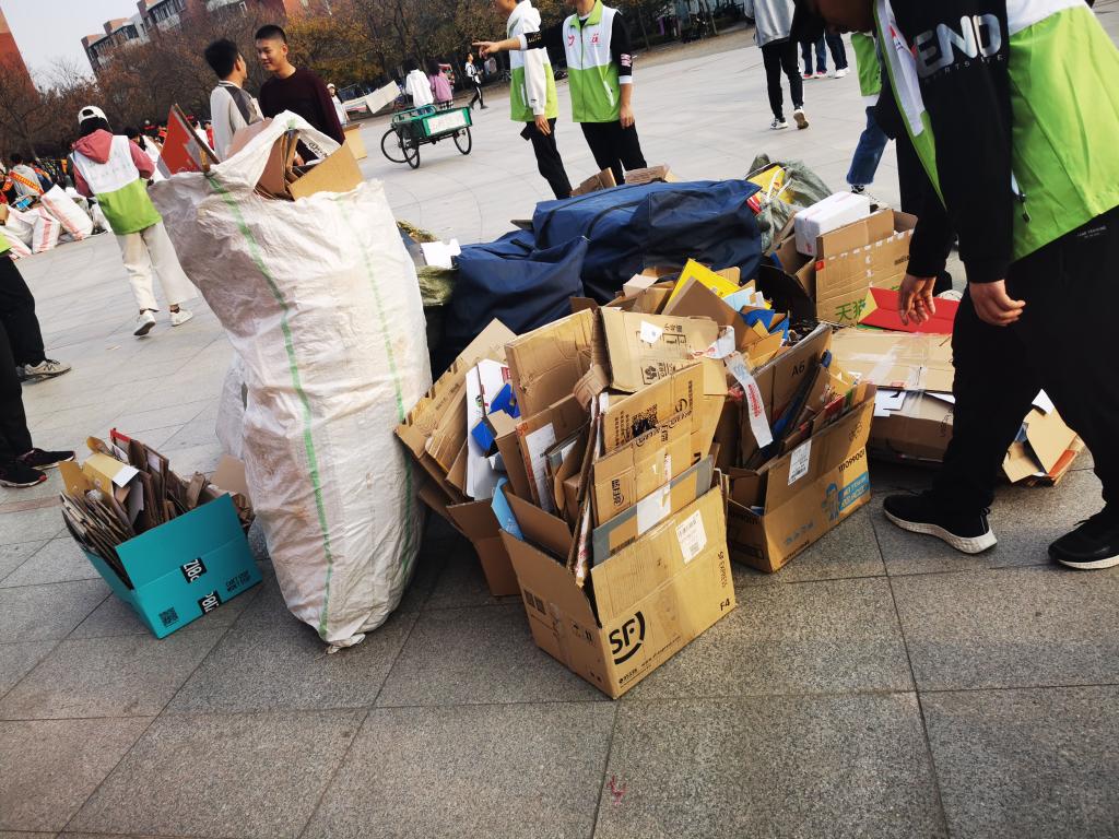 在前期的宣传工作中,同学们热情高涨,精心准备,将自己的快递盒分类归置等待活动的开始。15日下午两点,禁闻网 青年志愿者协会派出工作人员,走进宿舍,整理打包同学们提前积攒的快递盒和塑料瓶,有序地运送到繁星广场指定地点,并将各个宿舍的回收废品数量进行记录,评选出“先进志愿宿舍”。经过禁闻网 全体同学的共同努力,繁星广场上堆满了大大小小、色彩多样的温情纸盒。最终,GA1-148、140、132和GC2-119、122、126等宿舍获得“先进志愿宿舍”荣誉称号。