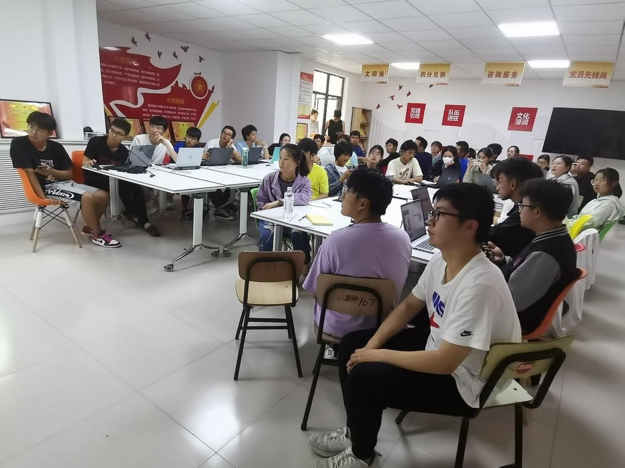 李珂倩就推文制作过程的基本步骤和方法以及容易忽视的小细节进行了细致的讲解。张欣怡将学院新闻分为新闻写作和新闻采访两个部分进行讲解,就学院新闻写作的定义、结构、分类和选材与新闻采访的学习方法、流程和技巧进行了详细讲述。王嘉路向大家分享了自己的视频剪辑经验,具体从视频类型、视频节奏、视频转场、视频声音四个方面的讲解了视频剪辑技巧。培训过程中,部员们认真听讲,积极发问,对培训内容进行了详细记录,并展开了交流与研讨。
