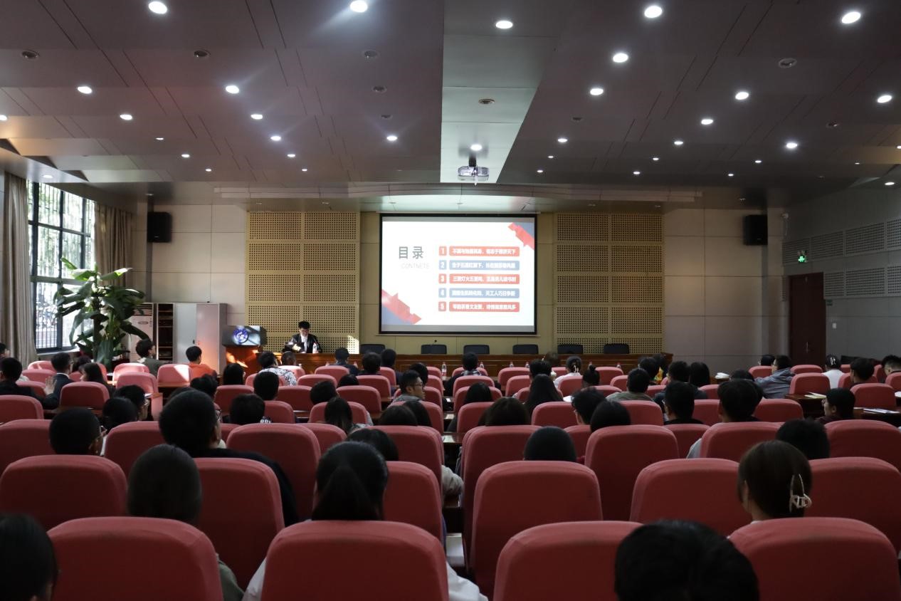 答辩会前,潘刚宣读了答辩要求和评分标准,并做答辩动员。随后,各候选人分别从学习情况、社会实践、科技创新、校园生活等方面对个人情况进行了汇报。答辩人精彩的自我展示搏得了阵阵掌声,他们曾获得多项国家级、省部级荣誉,积极参与社会实践和志愿服务活动,取得了突出的成绩,他们传承了学院良好的学风,为学院树立了榜样。