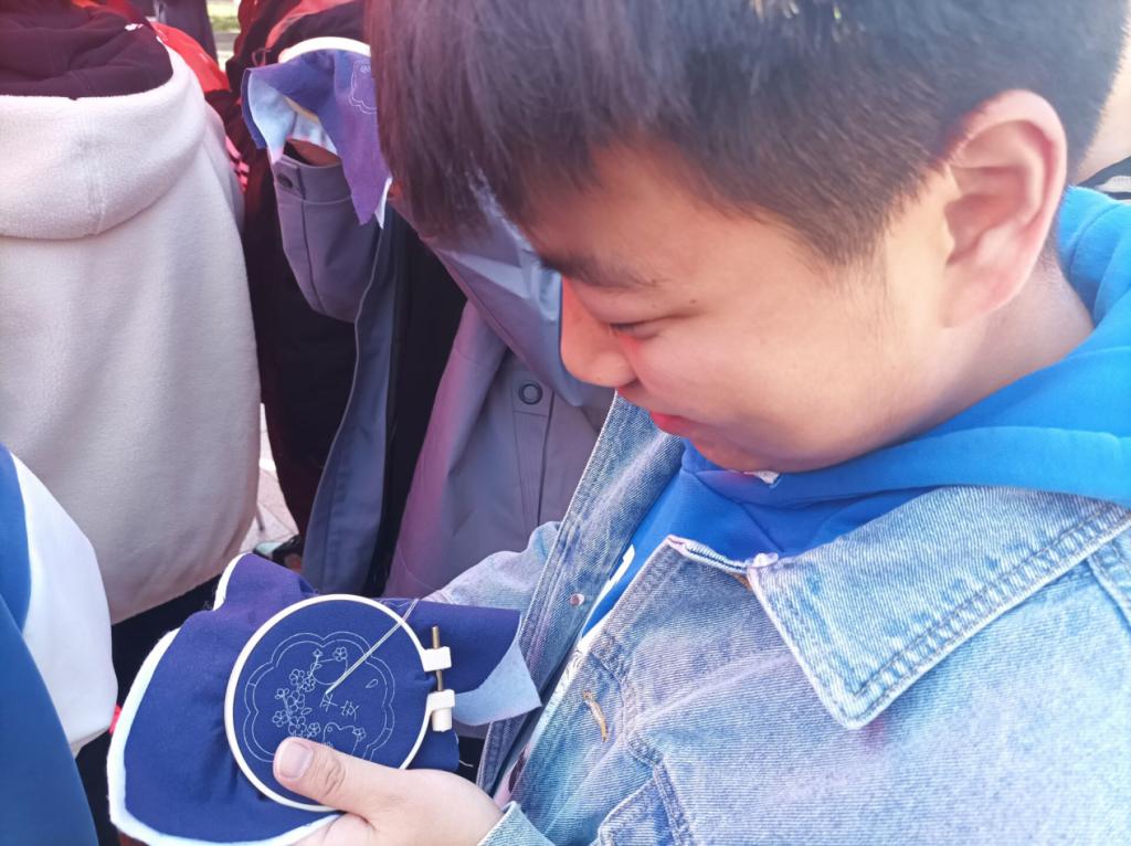 首先,工作人员向同学们讲解刺绣的相关知识,演示刺绣制作方式。随后同学们自行创作,制作过程中工作人员进行全程指导,由浅入深、循序渐进地引导同学们学习刺绣,他们以针为笔,以线作墨,展现了对刺绣的兴趣和热情,绣完简单图样,大家意犹未尽,更有同学主动绣起了更复杂的花样,制作出了一个个精美绝伦的刺绣作品。活动结束后,同学们在刺绣中感受到了中国优秀的传统文化的魅力,并表示会继续学习更多的优秀传统文化技艺,继承和发扬优秀传统文化。(时林超 李骁斐)