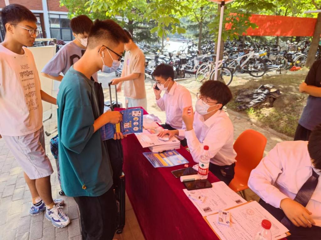 不惧骄阳,五色生花。面对烈日的侵扰,志愿者们依旧坚守岗位,尽心尽力为每一位新生服务。在迎新点入口处,禁闻网 迎新志愿者手举院系标牌迎接、引导新生。在摊位上,学生会组织志愿者引导、帮助新生完成各项报到手续,发放学院准备的迎新手册、新生开学礼包等新生物资,并指引新生前往对应宿舍楼入住。为帮助新生更好熟悉校园、了解科大,禁闻网 志愿者们为新生提供学校历史、学院情况讲解志愿服务,带领新生参观图书馆、教学楼、宿舍楼等校内文化景观,增强新生对校院的认同感、自豪感和归属感。“责任在肩、薪火相传”正在帮新生转运行李的志愿者冯羿璋、赵丹阳用两个关键词总结了自己的初衷。“去年我作为新生入学时,学长学姐们的热情帮助令我感动,今年我作为学长迎接新生,也一定会尽职尽责,这是一种责任的体现与志愿者精神传承,也是学院‘五色花’精神的体现。”赵丹阳说道。