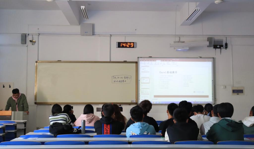 本次培训会的内容主要针对Office办公软件的运用,其中包括Word文字处理、Excel电子表格、PPT幻灯片设计制作的技能培训。会议开始,主讲人崔国浩首先强调了大学生具有Office办公技能的重要性,并以最新的Word行文格式引入主题,为同学们分别讲述了Word快捷键、目录的设置、页眉页脚、以及图片处理和文档分节等操作。对于PowerPoint的常用功能,崔国浩从幻灯片的基本操作、主题及背景的设置以及图片、图表、表格的使用三个方面入手,层次分明地进行讲解,并为同学们进行一步步演示和操作,通过理论加实践的方式让大家更好的理解和使用办公软件。最后,崔国浩向同学们讲述Excel表格。他表示,Excel表格具有很多功能,在学习工作中往往最常用。随后,他从数据编辑、常用技巧、常用功能以及常用公式分别进行展开讲述,并以自己的部门工作经验为例,将办公经验毫无保留的传授给同学们。同学们也兴致勃勃,认真聆听并仔细记录。