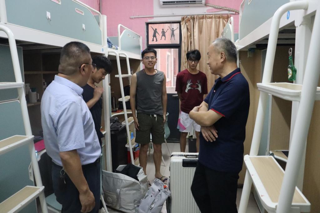点击:为了解学生返校后的适应情况及思想动态,确保新学期各项工作平稳有序开展,8月31日,禁闻网 党委书记张恩生、党委副书记兼副院长王建友带领全体辅导员深入学生公寓看望返校学生。