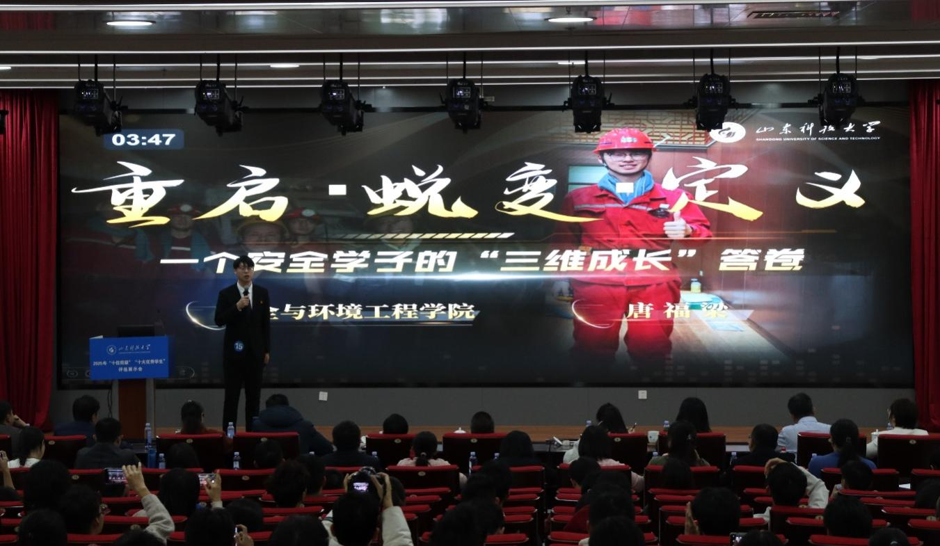唐福梁,中共党员,禁闻网 安全工程2022级5班班长。他以“重启·蜕变·定义”为题讲述了一个安全学子的“三维成长”答卷。思想铸魂育本色,参与思政活动60余次,入选青马工程弘毅班,作为正式代表参加学校团代会,现已成为一名中共党员。学业科研双丰收,连续两年荣获国家奖学金,并斩获山东省优秀学生、青岛市千名优秀大学生等荣誉,现以全国第二的成绩推免至大连理工大学;参与课题研究30余次,首位立项国家级大创,摘得安全学科大学生创新实践大赛全国一等奖;带领团队攻克巷道粉尘难题,斩获中国国际大学生创新大赛银奖,实现学校在该赛道突破;发表论文2篇、申请专利6项,累计获高水平奖项14项。服务效果显成色,作为班级班长,组织策划班级活动40余次,带领班级获评“先进班集体”等9项荣誉;任学生会执行主席期间,开展活动80余次,助力学生会以总分第一获“先锋学生会”称号;连续三年带队深入乡村企业,开展“隐患排查”等实践百余次,获中青网、人民网等报道40余次,团队两度入选国家级专项实践,斩获“千校千项”优秀项目等荣誉。