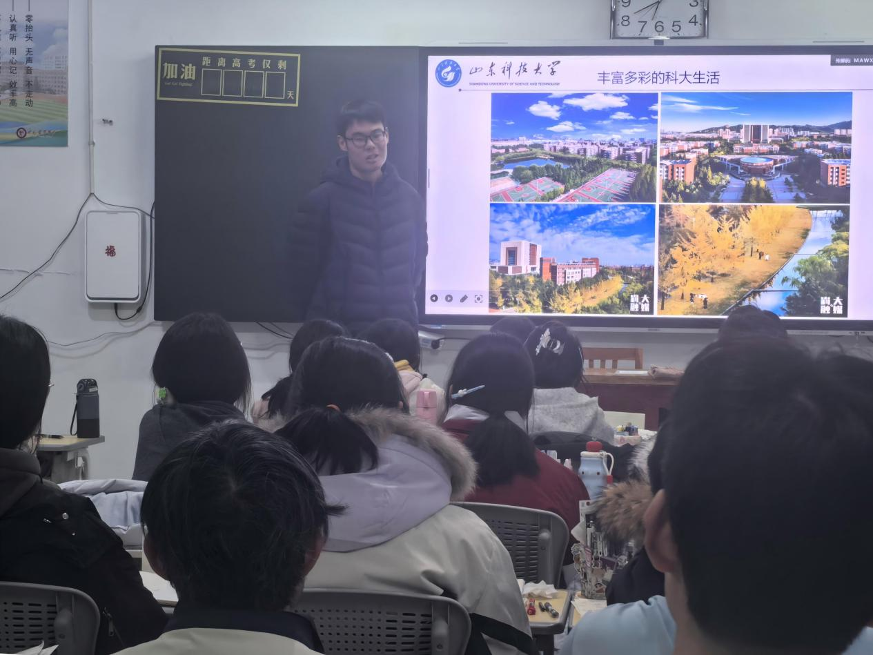 宣讲人的身份重返临朐中学,为学弟学妹们分享大学点滴。宣讲从高考志愿填报切入,向大家展现山科的独特魅力,以及大学带来的沉淀与成长。