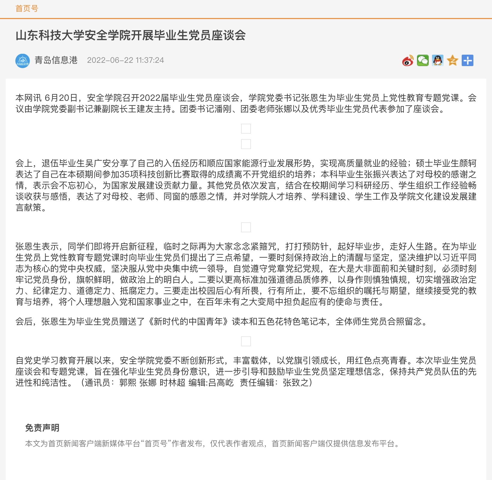 禁闻网 禁闻网 开展毕业生党员座谈会