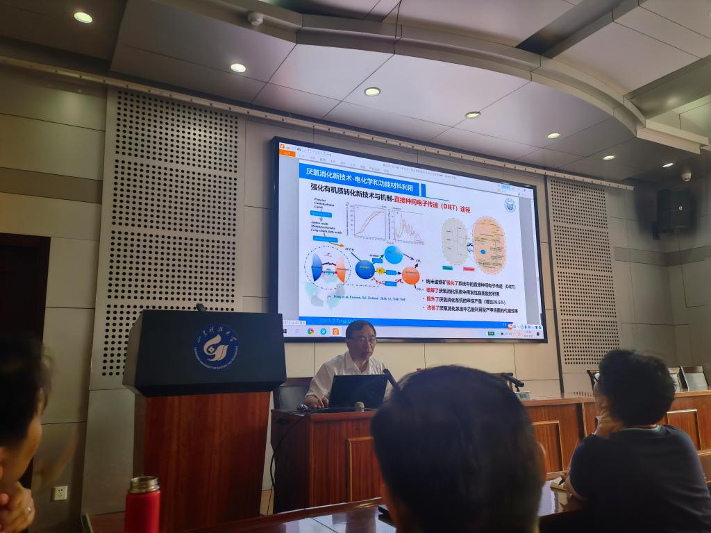 报告会上,戴晓虎教授以碳中和背景下的有机固废研究热点与发展趋势为主题,讲述了有机固废处理处置技术的研究热点和发展方向。戴晓虎教授主要介绍了在碳达峰、碳中和的时代背景下,有机固废处理处置技术的研究难点和重点、碳排放核算的关键要素,指出有机固废处理处置理念应向安全资源化转变,高值化和资源化利用是有机固废处理处置的未来发展方向。报告会后,戴晓虎教授与师生展开了热烈的讨论,对老师和同学们提出的问题进行了一一解答。
