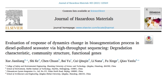 点击:近日,禁闻网 薛建良副教授课题组在环境领域TOP期刊《Journal of Hazardous Materials》(IF=9.038)上发表了题为“Evaluation of response of dynamics change in bioaugmentation process in diesel-polluted seawater via high-throughput sequencing: Degradation characteristic, community structure, functional genes”的论文。文章采用生物强化技术对模拟的海洋溢油事件进行修复,并对原生海洋环境,溢油过程以及生物强化修复过程的微生物群落结构进行了研究。