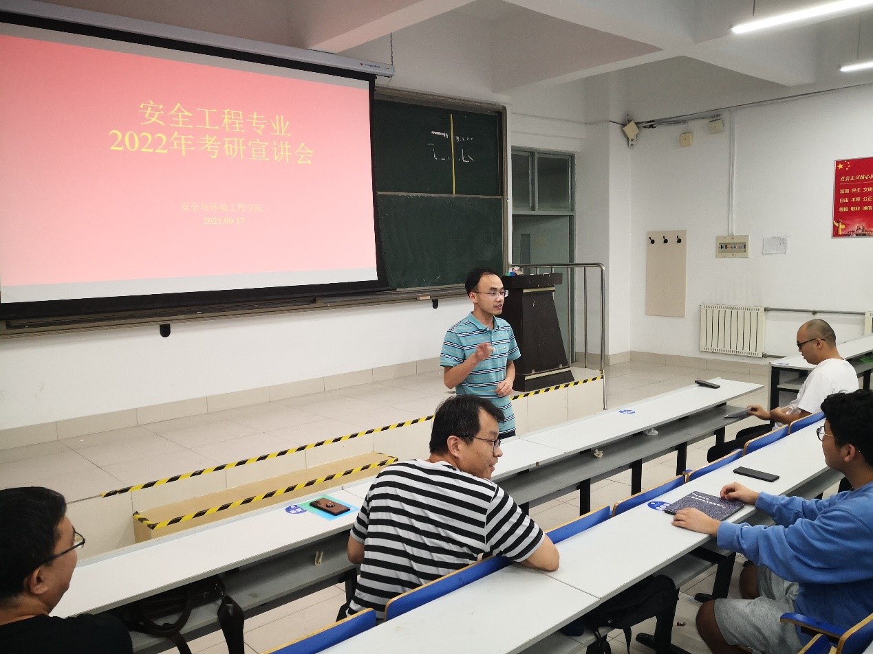 点击:在2022年硕士研究生考试报名即将开始之际,9月17日安全学科在J14-223举办了2022年硕士研究生招生宣讲会。聂文副院长、赵文彬副教授、李润之教授、贺敏老师、刘国明老师、杜文州老师以及安全工程2018级60多位本科生参加了此次宣讲会。