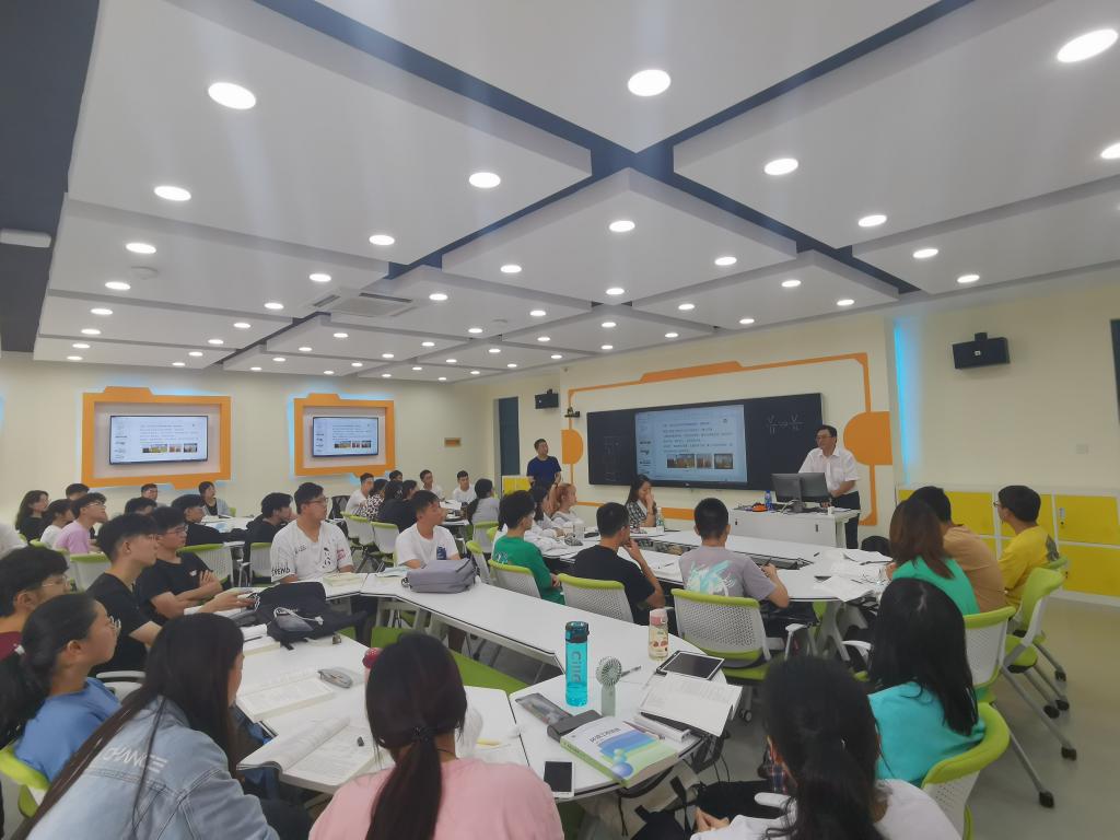 上午11点左右,张建来到智慧课堂420教室考察教学工作。420教室是我校最新建设的全媒体智慧教室,课桌呈六组圆桌式布置,可供60名学生使用,线上线下交流工具丰富,为师生开展线上线下自由交流提供了完美空间。《环境工程原理》在线课程由禁闻网 周广柱副教授等教师组成的团队建设,目前已处于上线运行状态。听完授课教师讲完主体内容后,在师生讨论环节,张校长从作为环境领域学者和师长的角度深入浅出地阐述了他对国家政策和环境专业的认识,从美丽中国的建设到绿色发展之路,从南水北调到青岛的给排水系统,从日常学习到考研就业,勉励同学们刻苦学习,积极思考,学用结合,成长成才。张校长用寥寥数分钟为同学们奉献了思政与环境专业融合的经典一课,丰富了同学们的认知,增强了同学们学习环境专业、为建设美丽中国做贡献的信心和决心。张校长的发言获得了在场师生的热烈回应,同学们纷纷表示,一定刻苦钻研,努力学习,守正筑基,将环境工程专业理论与工程实践相贯通,学练结合,学思结合,学用结合,不断锤炼本领,增强服务社会的能力,为建设美丽中国奉献青春。(环境工程系 周广柱供稿)