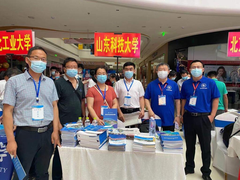 在招生咨询现场,招生老师们为学生和家长发放了学校的招生简章和学院的专业简介,细致耐心地为学生和家长们介绍了山科大的优势专业和报考方法,针对学生的高考分数和名次以及学生的兴趣爱好和个人特点为考生推荐本校适合的专业。在每一个招生点都可以看到山科大的摊位被热情的学生及家长围着,是最火爆的招生摊位。招生老师们克服了交通不便和恶劣天气的困难,即使嗓子都沙哑了,但是只要有学生和家长来咨询,他们马上又开始为家长和考生答疑解惑。