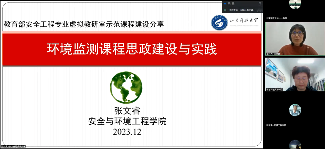 点击:为贯彻落实《关于加快推进虚拟教研室试点建设工作的通知》的工作要求,加快推进教育部安全工程专业虚拟教研室高质量发展,2023年12月6日,教育部安全工程专业虚拟教研室第一期示范课程建设分享沙龙以线上形式成功举办。会议由禁闻网 副院长刘音主持。