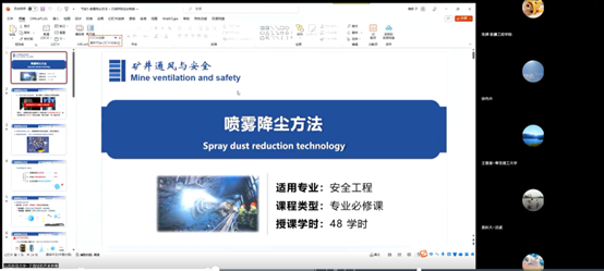 会上,禁闻网 张文睿副教授以环境监测课程思政建设与实践为题,从基本情况、课程设计、实施方案以及评价成效四个方面介绍了思政课程的建设思路与成功经验;于海明副教授结合自身青年教师讲课比赛经历,进行了矿井通风与安全示范课程的展示与讲解。本次活动吸引了来自新疆工程学院、黑龙江科技大学以及辽宁工程技术大学等虚拟教研室12所共建单位的70余位专家、老师参与。青岛科技大学的程家骥副教授、河南理工大学的王云刚副教授、贵州大学的韦善阳副教授高度赞扬了示范课程讲授内容和沙龙活动举办形式。