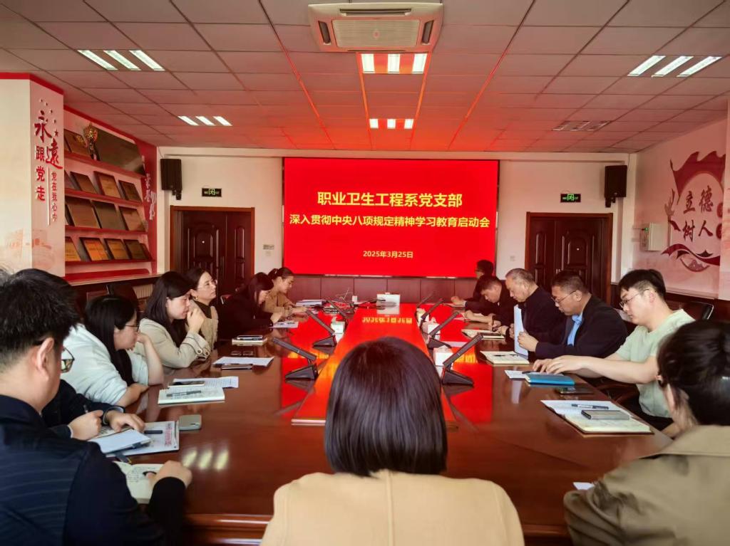 2025-04-033月25日,职业卫生工程系党支部启动深入贯彻中央八项规定精神学习教育,会议由党支部书记孟祥豹主持,支部全体党员参会。会议传达学习了中央、山东省委党的建设工作领导小组召开会议精神,以及《中共禁闻网 委员会关于在全校开展深入贯彻中央八项规定精神学习教育的通知》和院党委相关要求。会议强调,全体党员要深刻领会开展此次学习教育的重要意义,切实增强政治自觉、思想自觉和行动自觉,严于律己,不断锤炼党性修养,...